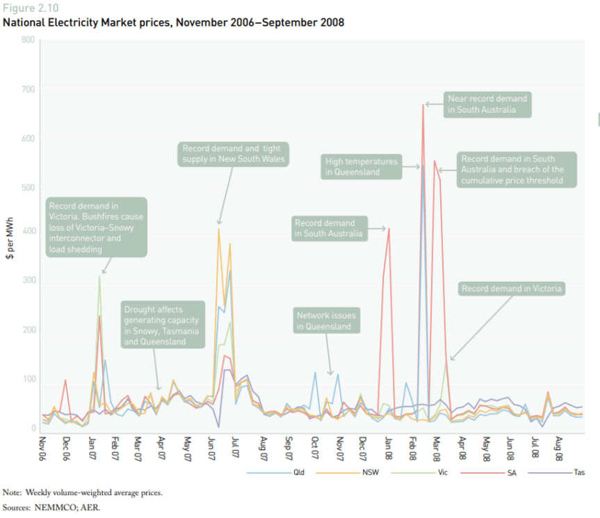 What was it that saw SA’s wholesale prices temporarily rocket in 2008? Well, why not go to the AER’s report, once again.