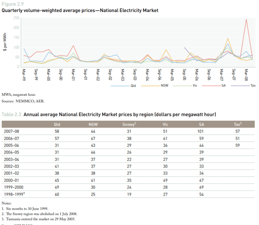 We’ll start with the Australian Energy Regulator’s report from 2008: National Electricity Market 2008. A publicly available document within easy reach of Holmes a Court and his mates at ruin-economy.