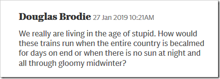 For instance, there was this little exchange on the Telegraph article today about wind farms along the HS2 route to power the trains: