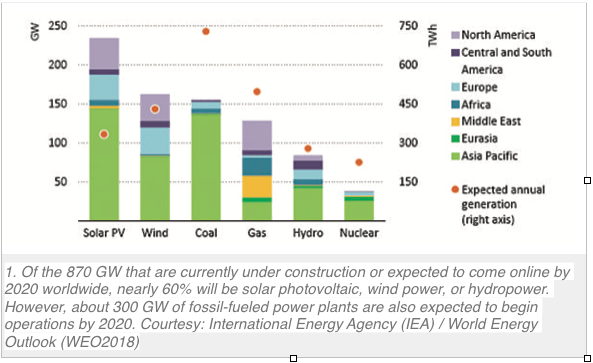 The IEA WEO 2018 supports a worldwide energy transition and forecasts capacity additions in power generation, by type, by 2020.