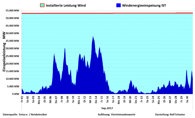 In September, 2017, the 53,000 MW of installed wind power capacity was able to deliver almost nothing for days.