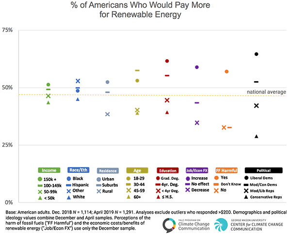 Gustafson, A., Goldberg, M., Rosenthal, S., Kotcher, J., Maibach, E., & Leiserowitz, A. (2019). Who is willing to pay more for renewable energy? Yale University and George Mason University. New Haven, CT: Yale Program on Climate Change Communication.