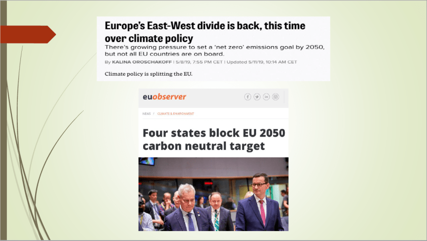 The West Europeans are telling the Poles and the Czechs and the Hungarians, “You know what? Why don’t you give up on this coal and just buy some Russian gas instead?” and it doesn’t go down well. Somehow because they are climate deniers, they don’t like Russian gas, of course. But there is this deep divide between Eastern Europe, Western Europe.