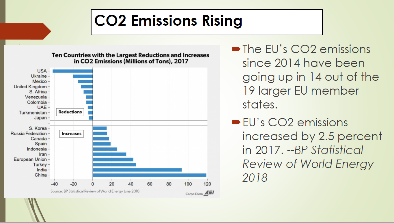 In the meantime, while spending trillions of euros on this matter, CO2 emissions are rising, so something isn’t working. The reason why it’s not working, of course, is that a lot of countries are just paying lip service to these targets and to these policies because they know it’s very costly, it’s unpopular, and it hurts their economies.