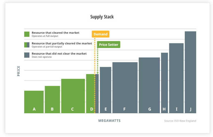 As ISO NE notes on its website, D is the price setter and gets paid 6 cents per kWh for the electricity they produce.