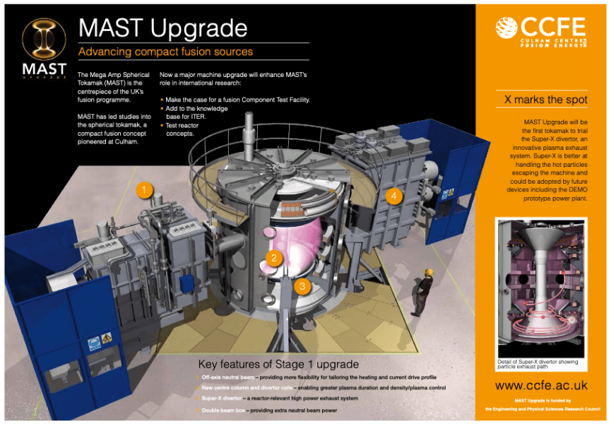 The Mega Amp Spherical Tokamak Upgrade (MAST U). Source: Culham Centre for Fusion Energy.