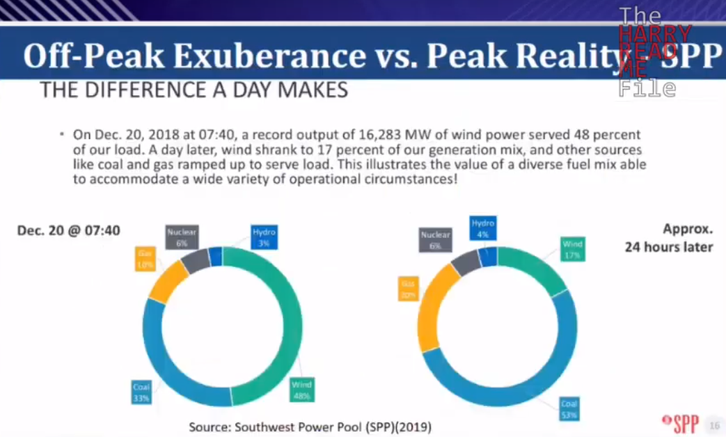 So not just Texas, SPP. Okay? A really infamous period of time. Michelle showed some examples from what happened in January, very well known that you had a drop off significantly and wind relative to forecast. This is a slide from SPP. This is a deck they presented. A slide in the common is just significant. This is a major wind penetrated interconnect. I think everybody knows that. 48%, okay, on December 20th dropped to 17 in less than 24 hours, caused major system disruption. If we wouldn’t had coal, nuclear and natural gas performing at extremely reliable levels and being able to ramp up, that would have been a major system failure.