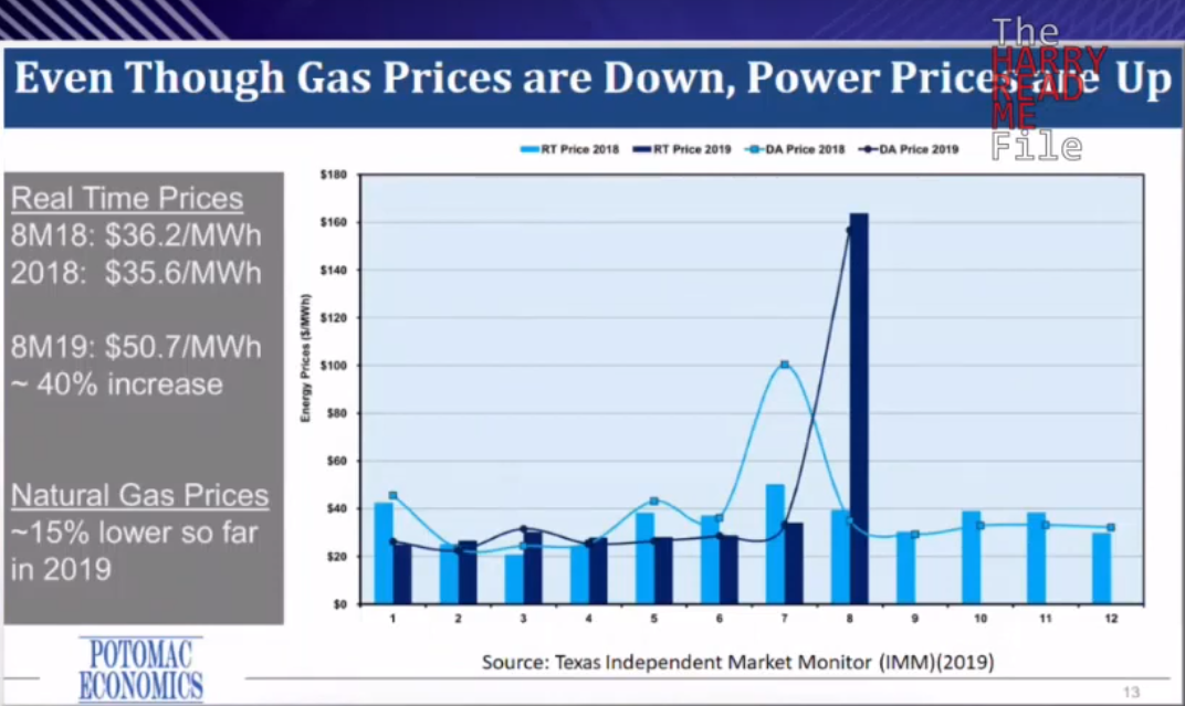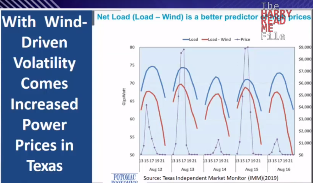 The price, the highest prices of power in Texas at peak going up to $9,000, okay? Those are no longer driven in the Texas market by when we need the most electricity. They’re close to our peak demand, but they’re now for the first time this year driven by when wind drops off quickly. Wind is moving, keep pricing like we’ve never seen it before. So this slide and the next slide by the independent market monitor, which is Potomac Economics, tell a very cautionary tale.