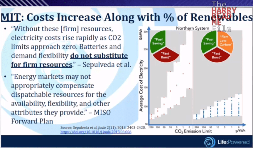 MIT States, and you saw this slide from Dr. Bennett, so I won’t repeat it other than to say that it is a fact that most document that as you escalate penetration, in other words, as you drop your grammes per kilowatt hour of power, your costs escalate because of the need to cover the intermittency issue. And that doesn’t even factor in the resilience things that Michelle has appropriately pointed out.