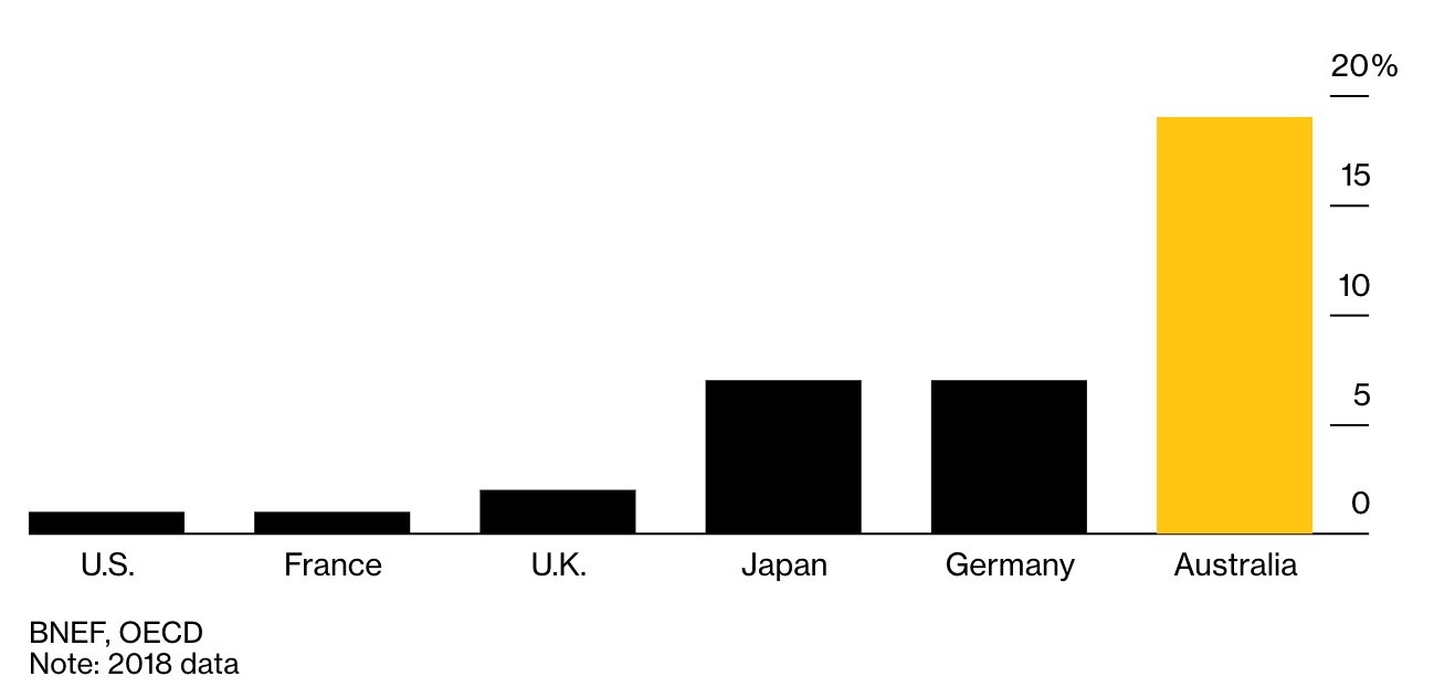 Subsidy seekers in the renewable sector and among its media clients are hinting, sometimes even claiming, that the fires are caused by Australian delinquency in inadequately forcing the replacement of coal by wind and solar. Such policies could never have any effect on the climate. Moreover, Australia has harmed itself far more than any other nation in substituting renewables for low cost, reliable coal. This is demonstrated by these two charts on per capita spending: