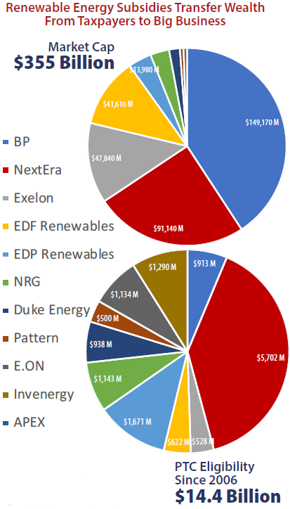 Second, they are taking billions of dollars from taxpayers and giving it to corporations with markets caps totaling into the hundreds of billions to subsidize wind and solar generation. In the U.S. alone, my calculations show, taxpayers have ponied up more than $80 billion since 2006.
