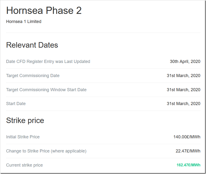 The current market price for electricity is below £20/MWh, so Hornsea is getting eight times what it would get if it had to trade in the market.