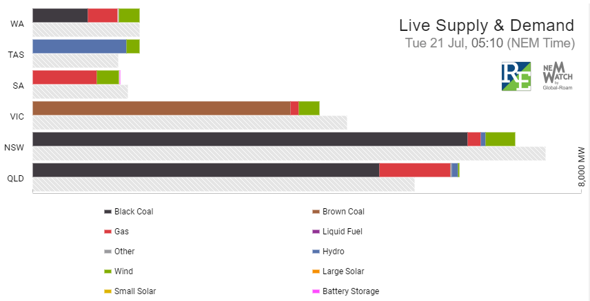 Some particularly revealing pictures can be found via the Fuel Mix tab at the top of the Data Dashboard. For some strange reason it is updated at 4am every morning and it lags so to see what the mix is today you have to wait for a day or two. This picture shows the mix in SA recently that you can access today.