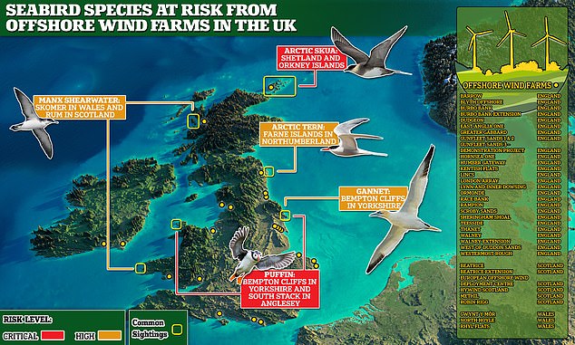 He added: ‘We would like to see the Government take a strong steer in deciding where these developments happen, how they are resourced and make sure plans are moved into areas with lower or zero impact on seabird populations.