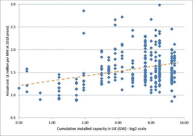Figure 1 : UK onshore wind : actual capex cost versus installed capacity