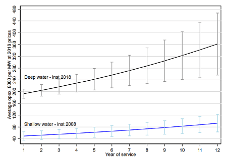 Figure 5 UK offshore wind: average opex costs vs year of service