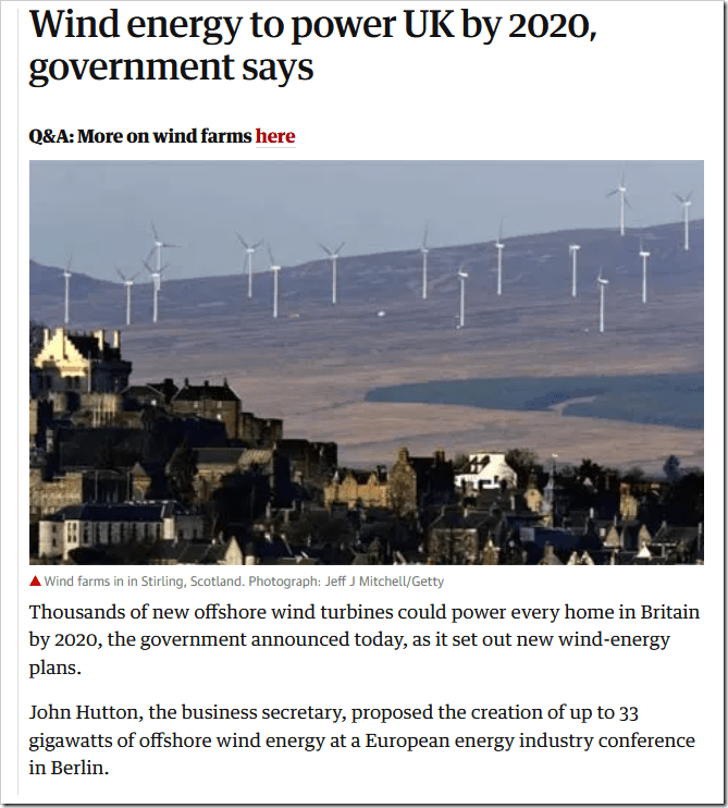 Thirteen years ago, the Labour government promised us that wind power could be powering every home by this year. (I wonder where I have heard that lately!)