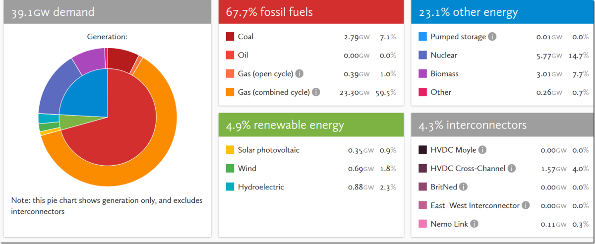 As ever, it is fossil fuels which have come to the rescue, with gas currently supplying 60% of the nation’s power, and even coal, which has been fired up to give 7%.