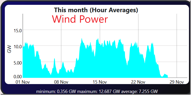 The British are masters of irony. Fitting then that during what was declared as ‘UK Wind Week’ its wind power output was utterly risible.