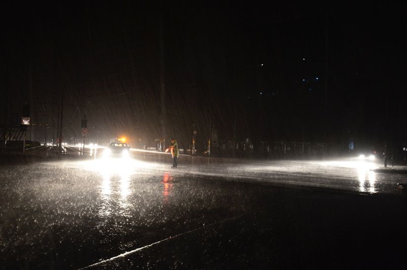 A lone policeman directs traffic near Victoria Square in Adelaide’s CBD during the statewide blackout in September 2016.