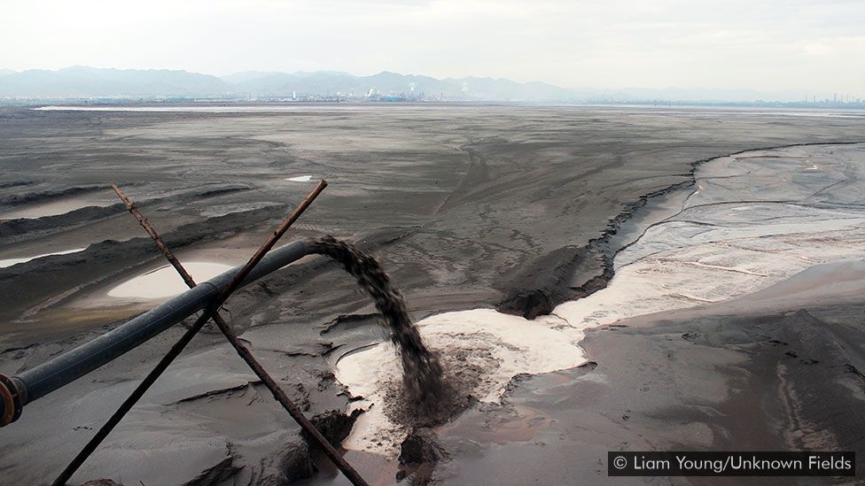 From where I’m standing, the city-sized Baogang Steel and Rare Earth complex dominates the horizon, its endless cooling towers and chimneys reaching up into grey, washed-out sky. Between it and me, stretching into the distance, lies an artificial lake filled with a black, barely-liquid, toxic sludge.