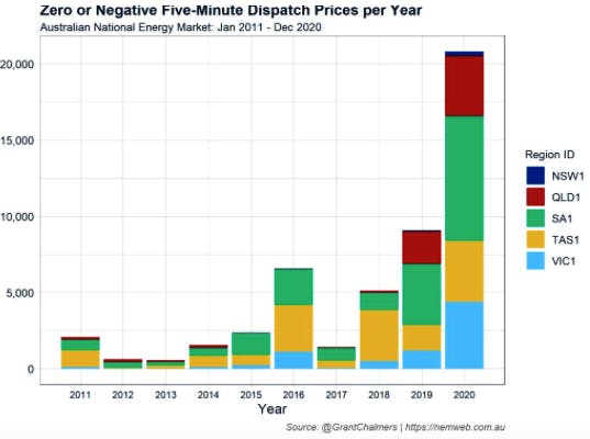 Those pursuing the mirage of low-cost green power are also oblivious to the costs this has caused, one symptom of which is negative electricity prices followed by high prices as nature causes renewable power to surge in and out. Such volatility of price and supply undermines the economics of coal (and gas) that still provide two thirds of electricity, forcing station closures and a subsequent higher price plateau. Almost unknown 20 years ago, negative prices prevailed 4 per cent of the time last year.
