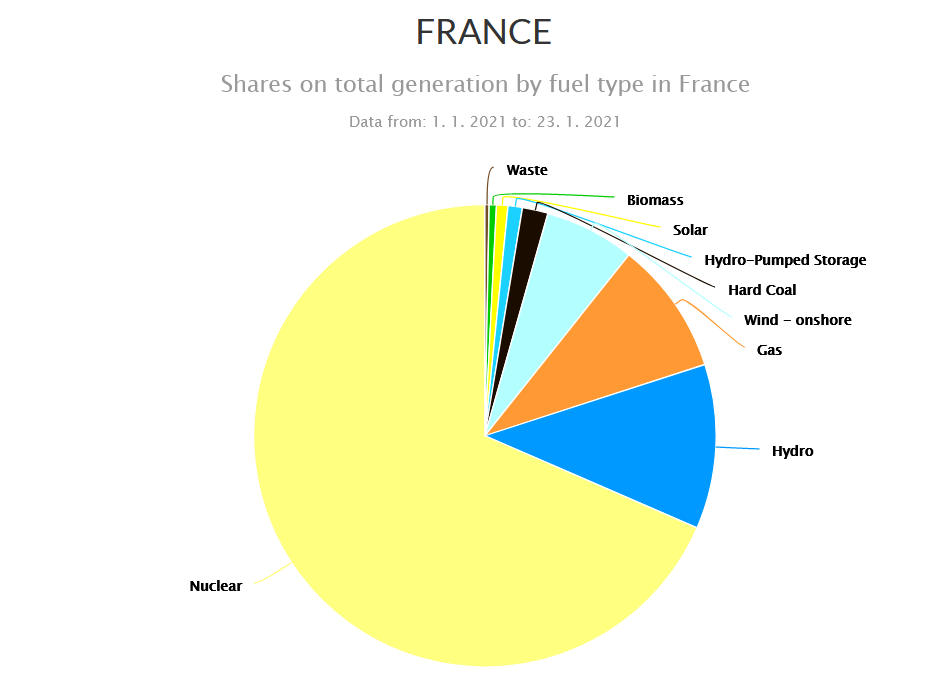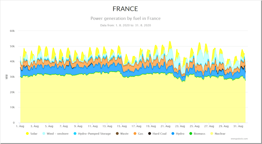 Things of course are more complicated, in that France often needs to import power from elsewhere in Europe. Given that most of that is still coal and gas based, it makes an even bigger nonsense of the National Grid’s argument.