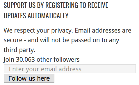To that end, we can only encourage our Facebook followers to go direct to the source. And the best way to do that is to sign up by providing your email address in the window at the upper right of your screen (see above), after which you’ll get a daily email alert with a link to every one of our posts. That way, you’ll never be deprived of the latest from STT, should Facebook ever decide to mess with our Facebook site or our content, in the future.