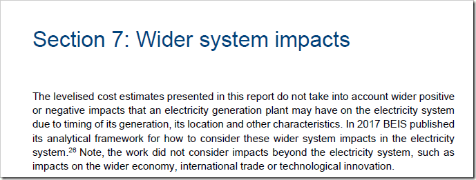 You cannot of course simply compare generation costs, which the EIA have done, as there are associated system costs involved, as BEIS explain: