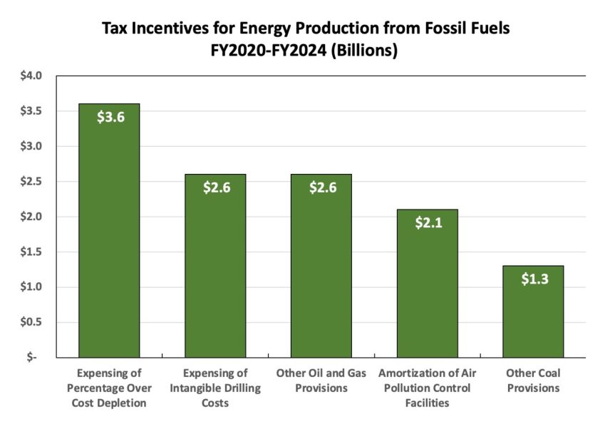 Oil and gas companies receive tax deductions, not credits, that are mainly targeted to small independent oil and natural gas producers, rather than the major integrated oil companies. Two tax deductions are the percentage depletion allowance and expensing of intangible drilling costs. As the oil and gas in a well is depleted, independent producers are allowed a percentage depletion allowance to be deducted from their taxes, similar to the depreciation of assets recognized across the tax code for all businesses. This allowance was first instituted in 1926 to compensate for the decreasing value of the resource, and was eliminated for major oil companies in 1975. This tax deduction is estimated to save the independent oil and gas producers about $0.6 billion in fiscal year 2020.