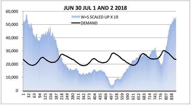 And, as David Bidstrup points out below, there is a monumental chasm in wind and solar power output that would need to be magically filled to get anywhere near the dream of an all wind and sun powered future.