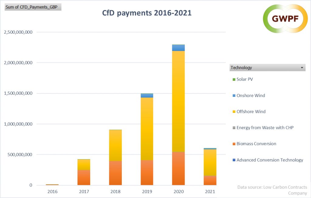 The cost of the Contracts for Difference regime is accelerating, and rose by £0.7 billion last year alone, reaching £2.3 billion in 2020. Consumers are already paying out £6 billion under the Renewables Obligation and another £1 billion under the Capacity Market.