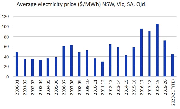 But depressed demand was the real cause of lower wholesale prices at that time. The precarious nature of the market is being progressively worsened as more coal generators are forced out creating risks of supply crises from unanticipated events. The latest of these is the explosion at Queensland’s Callide plant and the flooding at Victoria’s Yallourn plant and, though the average price for the current year is low, the average price in June was, at $164 per MWh, higher than any previous annual average price.