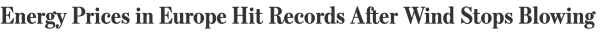 According to the Wall Street Journal yesterday, due to a rare lack of North Sea wind, already high European energy prices are climbing higher.