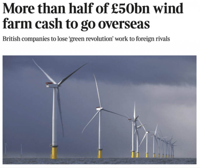 Britain is turning into the Venezuela of wind as green jobs are exported to Asia