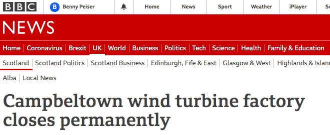 A trade union has slammed the “myth” of a green jobs revolution after Scotland’s only wind factory has closed permanently. The UK’s ambition to become the Saudi Arabia of renewables with promises of a wind farm jobs bonanza are evaporating as Britain is at risk of turning into the Venezuela of renewables.