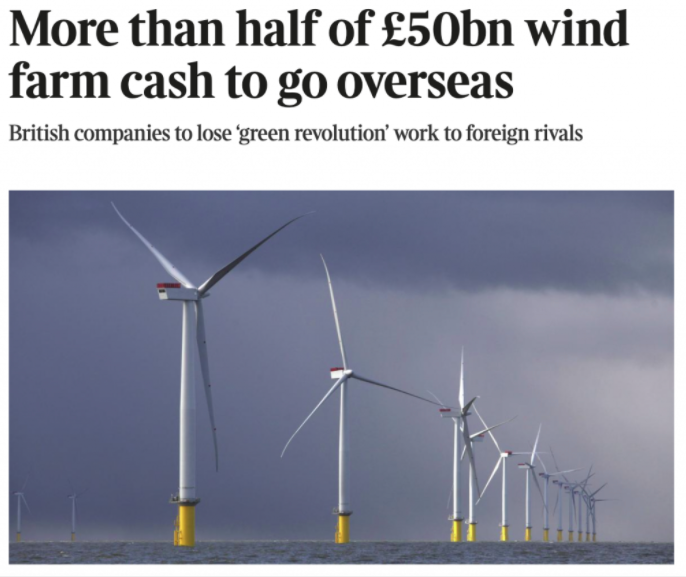 Britain is turning into the Venezuela of wind as green jobs are exported to Asia