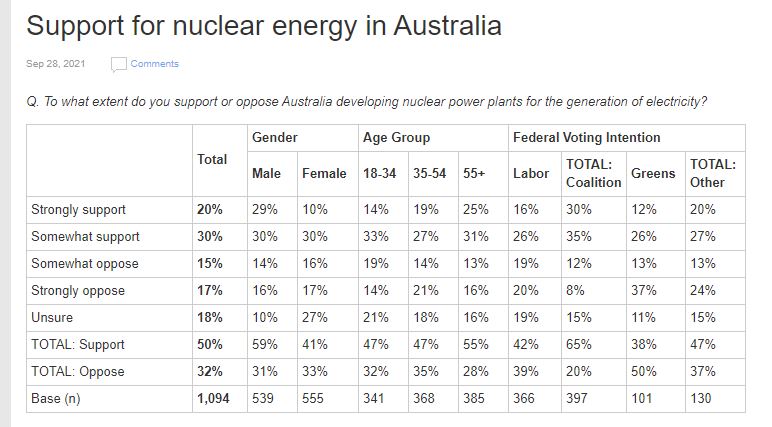 The thing slowing nuclear power in Australia was that coal power was so much cheaper. There is an opening here for one of the big parties to pull a nuclear rabbit out of their hats. The Coalition may lose the coal territory seats of Queensland and the coming election, especially given how unpopular they are in WA too. The Australian Workers Union now backs nukes. Imagine if the Labor Party planned for nuclear power which would allow them to offset the emissions from an extension of coal stations. The Labor Party would suddenly look pragmatic, differentiate itself from The Greens, and the Liberals would be left holding the “Green Hydrogen” and Snowy 2.0 pumped hydro fantasy bag that no one believes in.