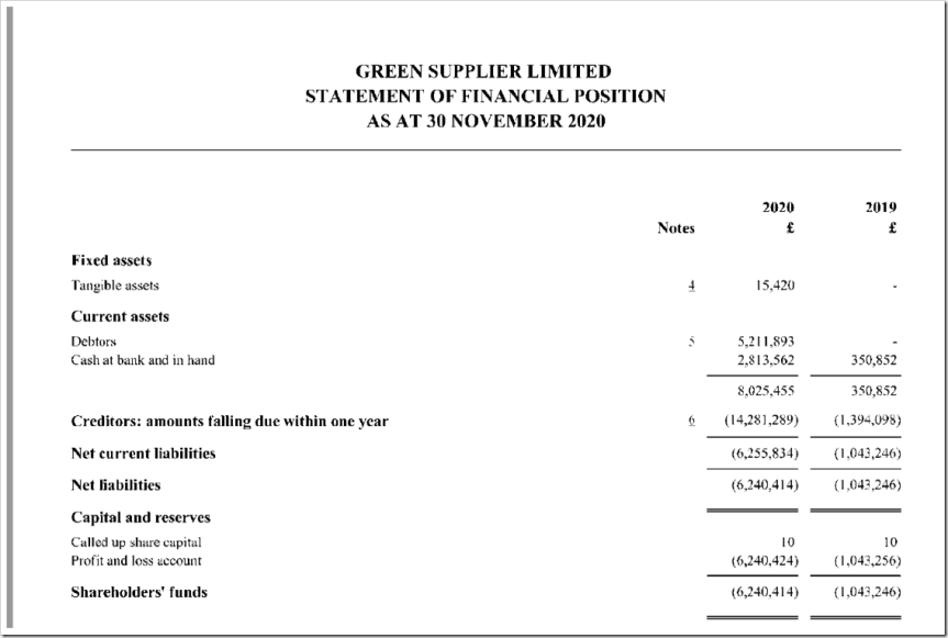 Green. , registered as Green Supplier Ltd, is one such tinpot company. Even last year, before the crisis started, their Accounts show they were to all intents and purposes broke: