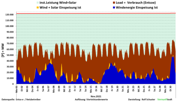 And yet, from late September, through October and well into November last year, wind power output in Germany often ranged between dismal and a doughnut.