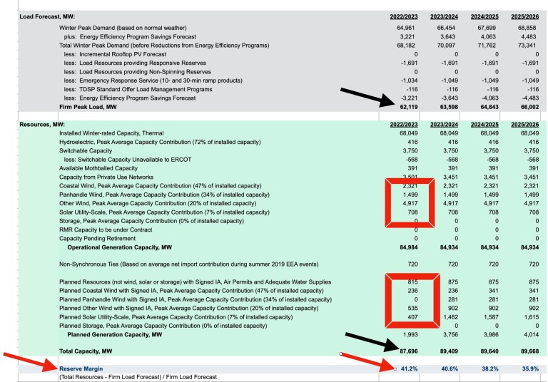Is ERCOT’s published reserve margins of 41.2% realistic for the winter of 2022? See red arrows.