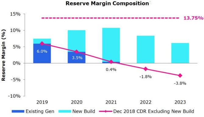 Only baseload power plants, i.e., dispatchable power, should be included in reserve margins. Natural gas, coal, and nuclear are the only types of power generation that can be relied on 24/7 throughout the year, assuming the plants are properly maintained, including winterization.