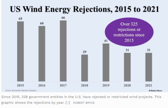 Before going further, let me be clear: you won’t hear about these hundreds of rejections from the Sierra Club. Nor will you read about it in the New York Times even though the resistance to the encroachment of big renewable projects is so widespread, and so many communities in New York are rejecting wind and solar projects, that the state has pushed through regulations that give Albany bureaucrats the authority to override objections of local communities and issue permits for renewable projects. Nor will you hear about the widespread resistance to renewables on National Public Radio, which as I explained in a March 7 article for Quillette, has been publishing pro-wind propaganda that is masquerading as news. Nor will you hear about it from academics at elite universities like Princeton, Stanford, and the University of Texas, who are producing elaborate net-zero models that require deploying massive amounts of wind-energy capacity.