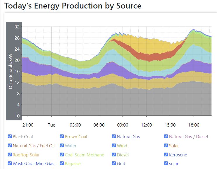 The media and the politicians never refer to the daily collapse of power output from the unreliables. It’s always the fossil fueled generators that cop the blame.