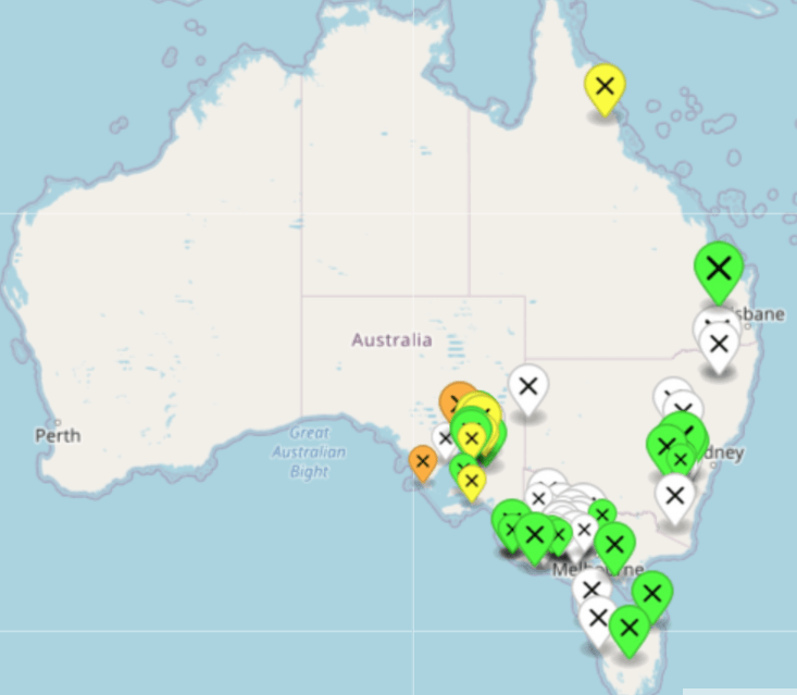 The image below depicts the location of wind farms situated across the Eastern Grid – from Mt Emerald in Far North Queensland, Coopers Gap in south-east Queensland; all along the eastern ranges of NSW – and Broken Hill in its far west; all over Victoria; the north of Tasmania; and all over south-central South Australia. Half a continent’s worth of wind power potential.