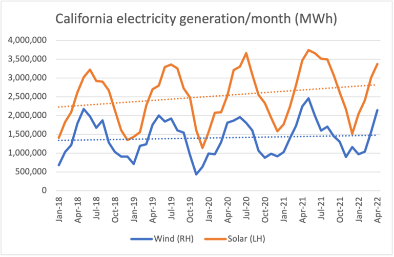 Which brings us back to chaotically intermittent wind and solar and an example in California which makes our point.