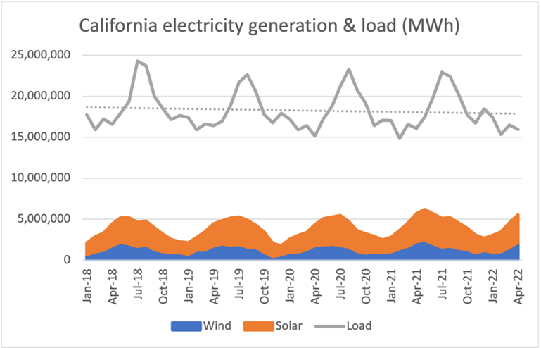 California recently produced more renewable electricity than it can use. Not for a year, nor even a day. Around 3pm on 8 May 2022, it produced so much renewable electricity that it amounted to 103% of total electricity demand.