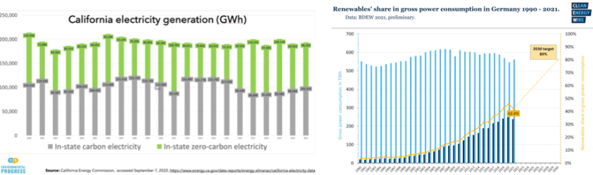 Meanwhile, places with heavy renewables penetration are reaching their limits. The amount of zero-carbon electricity California generated declined by 10% over the last decade, because of less hydroelectricity from drought, and the 2011 closure of San Onofre nuclear plant, which was 9% of the state’s total electricity generation. In Germany, the total amount of electricity from renewables declined in 2021, even as overall electricity consumption rose.