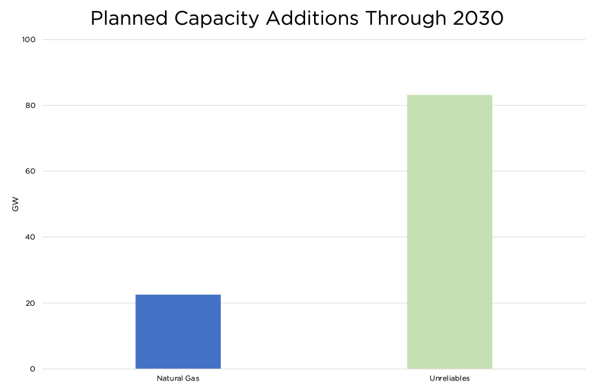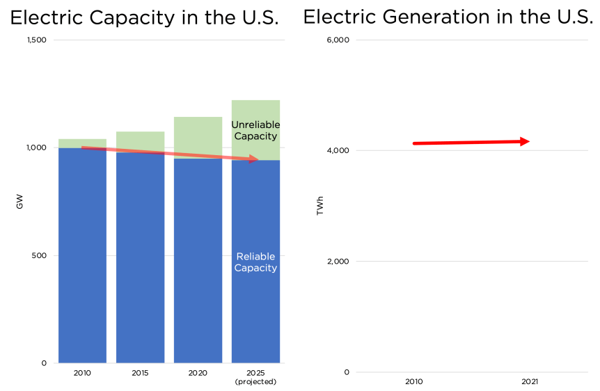 America’s grid is in decline and about to get far worse due to policies that 1) reward unreliable electricity, 2) prematurely shut down coal plants, 3) criminalize nuclear, and 4) force electric vehicle use.