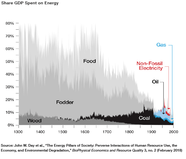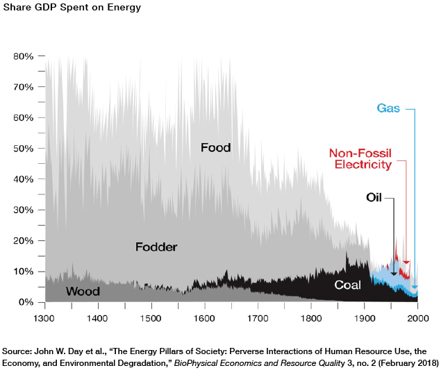 One can begin with a reality that cannot be blinked away: energy is needed for everything that is fabricated, grown, operated, or moved. It’s easy to ignore the benefits of cheap energy when it’s cheap, but not so much when it isn’t. Consider, to take one example, that more than half the recent rise in wheat prices arose directly from far higher costs for the natural gas used to make fertilizer.[20] Consider as well that digital devices and hardware—the most complex products ever produced at scale—require, on average, about 1,000 times more energy to fabricate, pound for pound, than the products that dominated the 20th century.